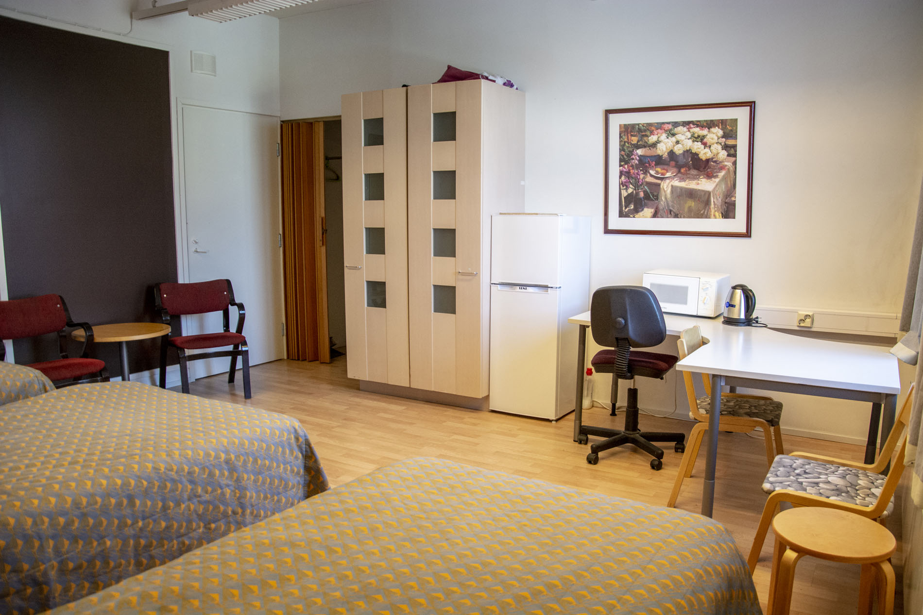Huoneiden hintaan kuuluu petivaatteet ja pyyhkeet, jotka vaihdetaan kahden viikon välein.